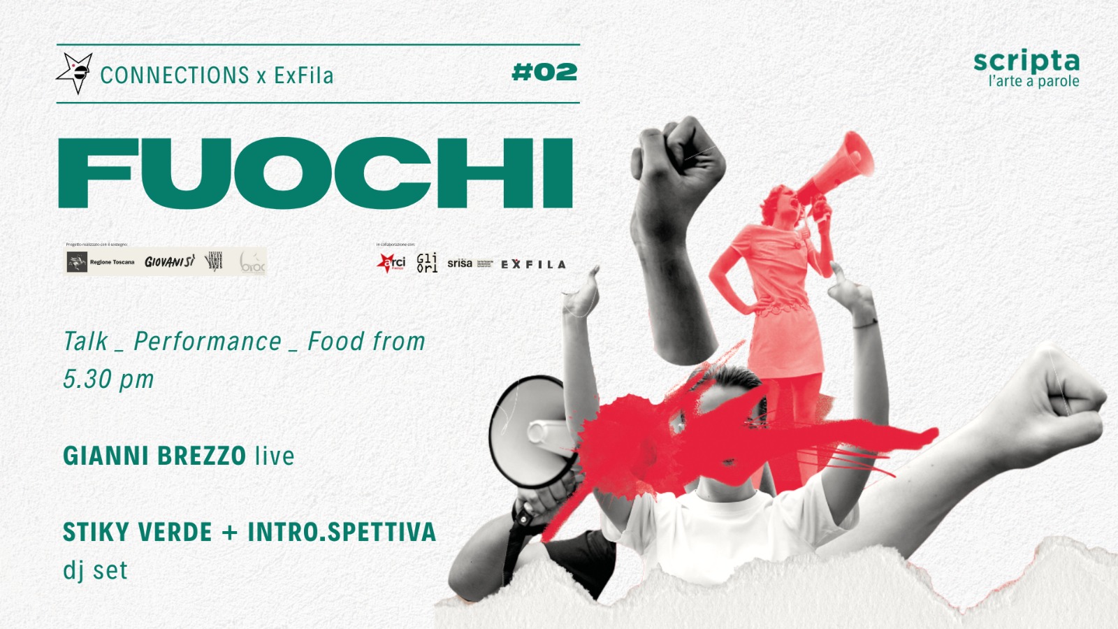 Torna Connections x ExFila con un nuovo appuntamento dedicato all’arte, alla parola e alla performance in collaborazione con Scripta. L’arte a parole. Un incontro dove i linguaggi si intrecciano, accendendo pensieri, visioni e corpi in movimento.